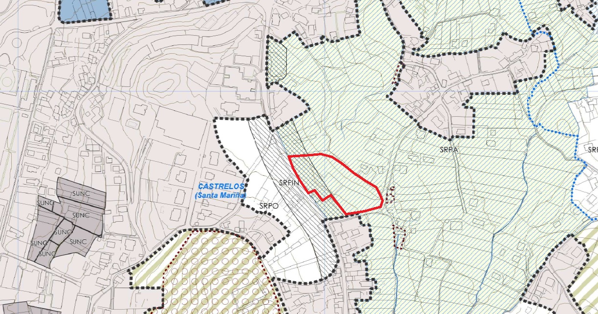 Suelo Rústico en venta en la Rúa Costa, Vigo. Formado por una finca registral, el suelo tiene una superficie de 9.200 m². Situado en la parroquia de Castrelos, junto al CEIP Mestres Goldar, Monte da Mina y Residencial Colina de Castrelos. El PXOM de Vigo clasifica este suelo como Suelo Rústico de Protección Especial.